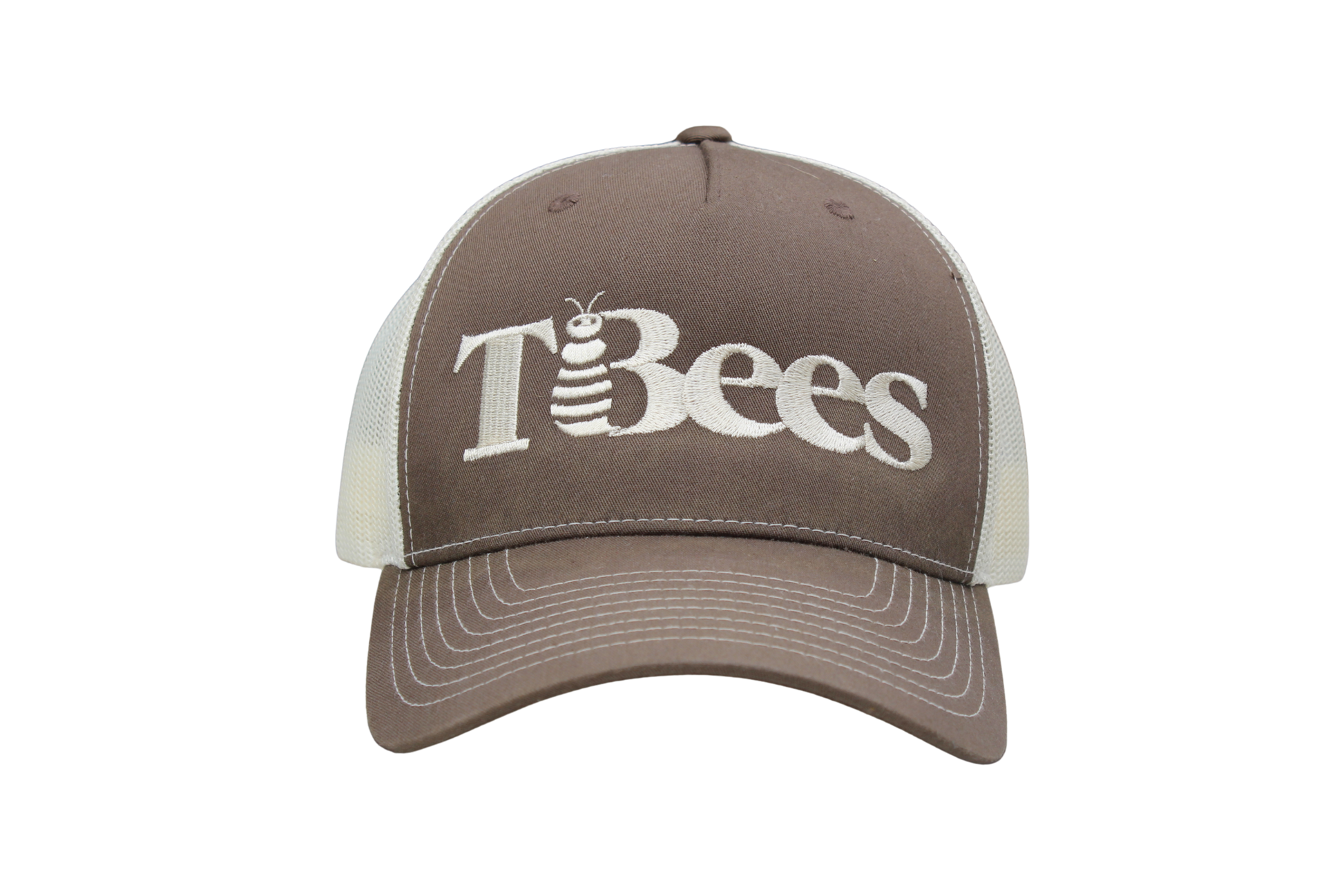 Show your love for the bees and support local beekeeping with the TBees 5-panel trucker hat in chocolate chip/birch!